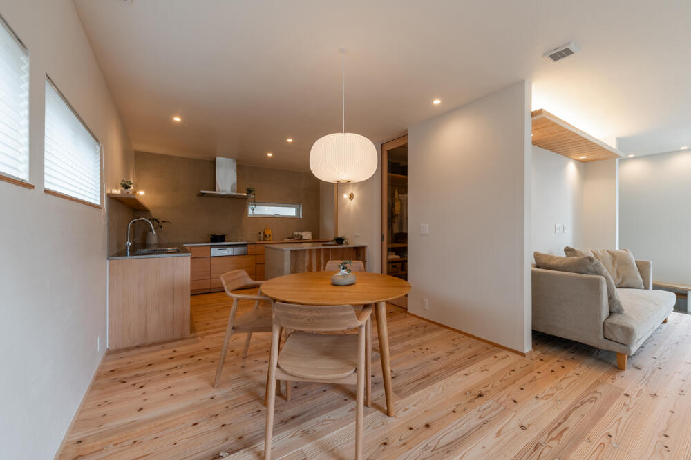 漆喰仕様はそのままに。床材は木目が美しい「タモ」を仕様。