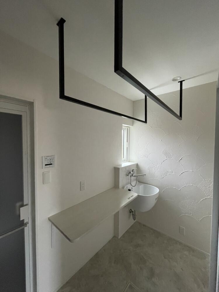 ・3帖の脱衣所兼ランドリールームには固定物干し(kacu)とマルチシンク