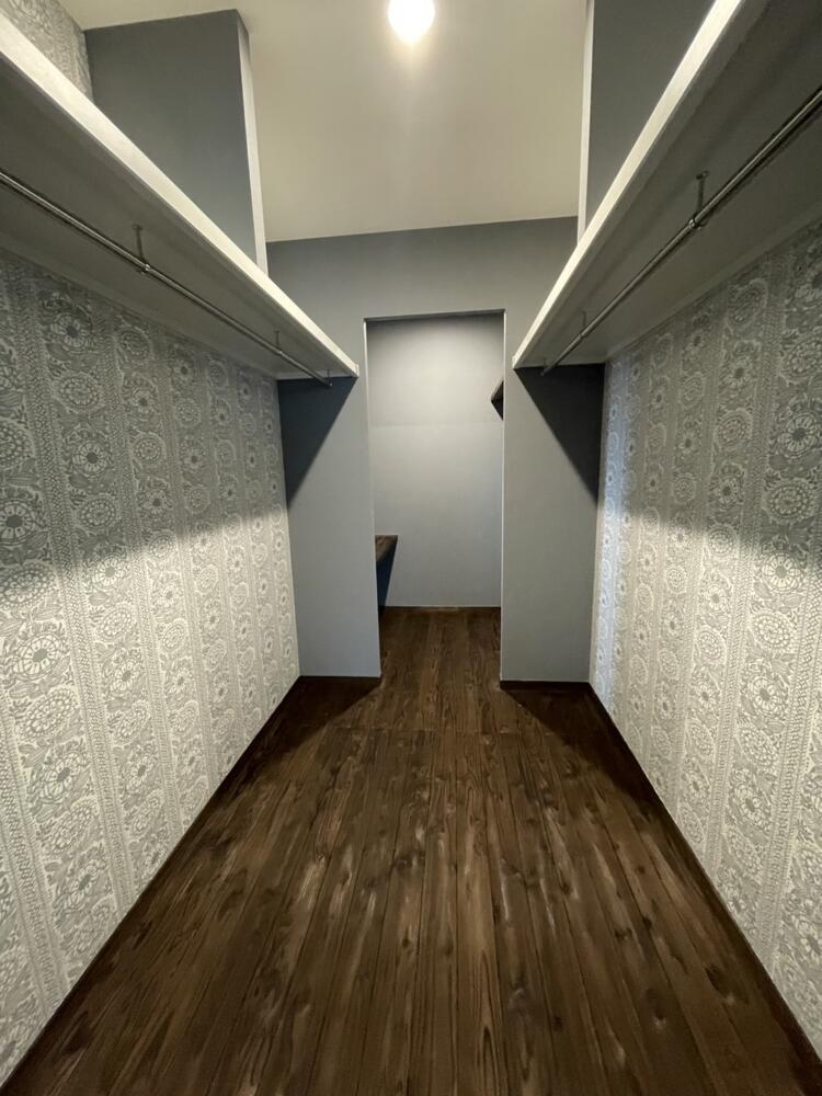 ・4帖のWICは普段使いの物から季節ものまで収納