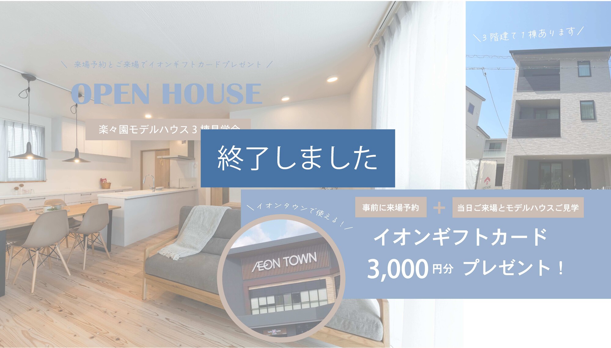 3階建てを含むモデルハウス3棟のオープンイベントを開催します。