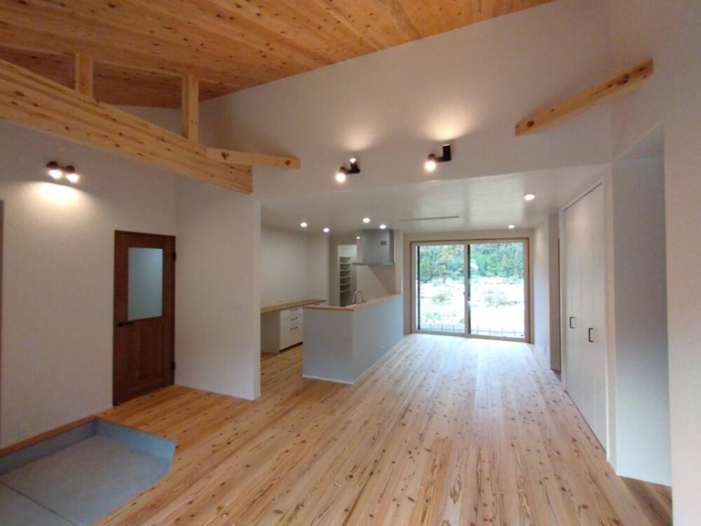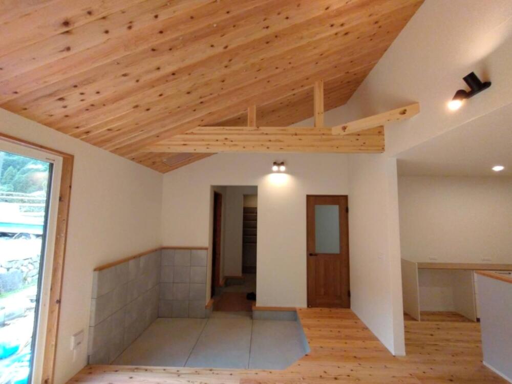 玄関から土間続きでリビングに繋がり、薪ストーブのある間取りやC値0.14という高気密が魅力です!