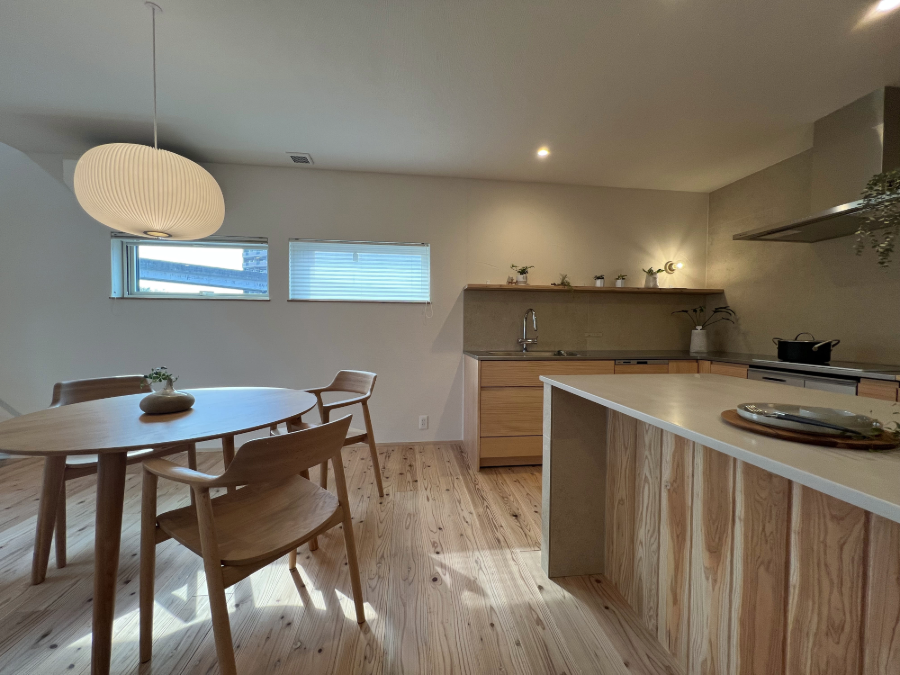 漆喰仕様はそのままに。床材は木目が美しい「タモ」を仕様。
