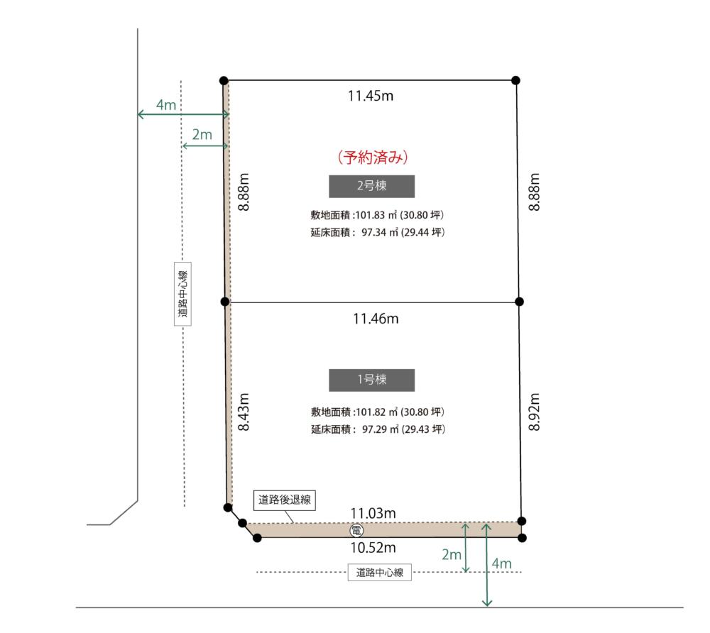 土地面積 | 敷地面積:101.83㎡(30.80坪) 延床面積: 97.34㎡(29.44坪) |