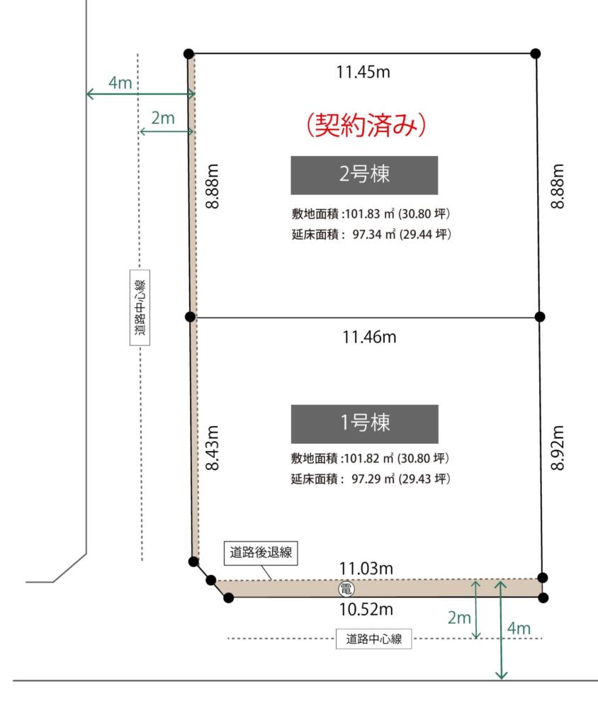 | 土地面積 | 敷地面積:101.82㎡(30.80坪) 延床面積: 97.29㎡(29.43坪) |