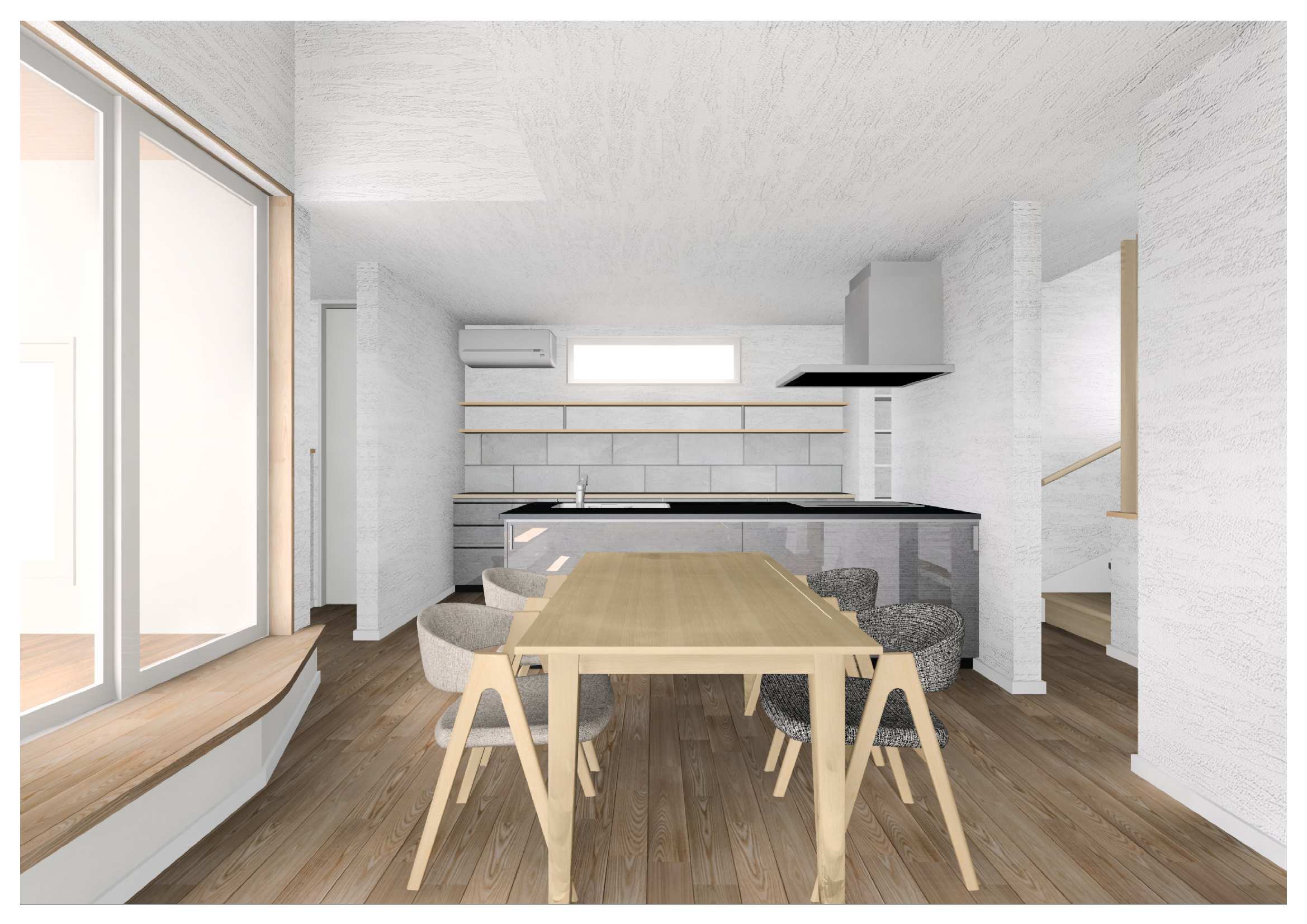 ・リビングサイドに造作のベンチ