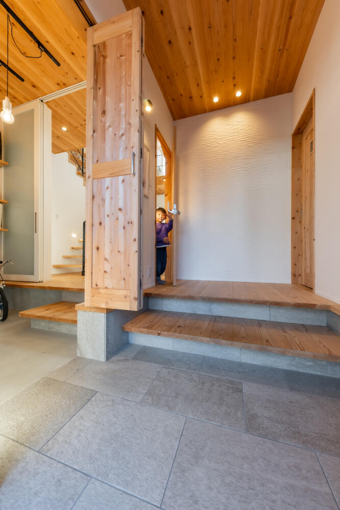 玄関から入って左手に広がる土間空間。土間空間は仕切りもできるので見せたくない時に隠せて安心◎