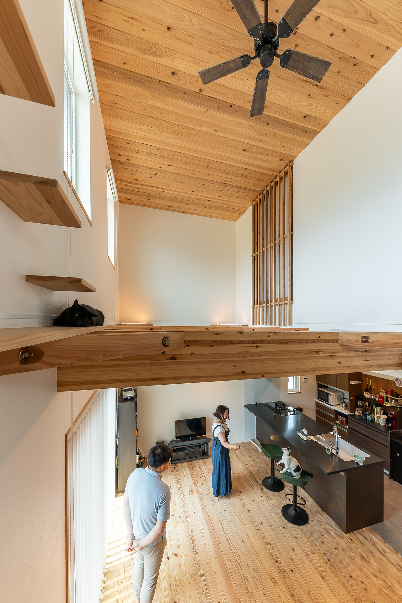 中二階の横にキャットステップを設け、猫ちゃんが自由に行き来できるようになっています🐈