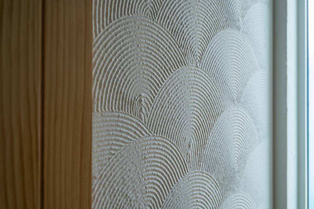 玄関の漆喰は【扇くし引き】で和風の雰囲気に。