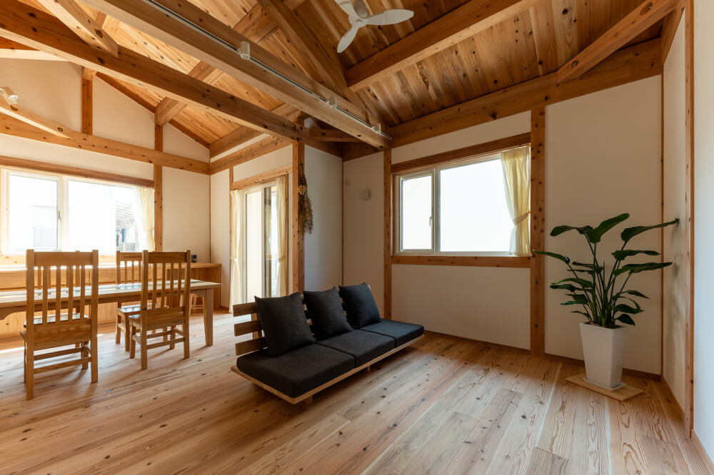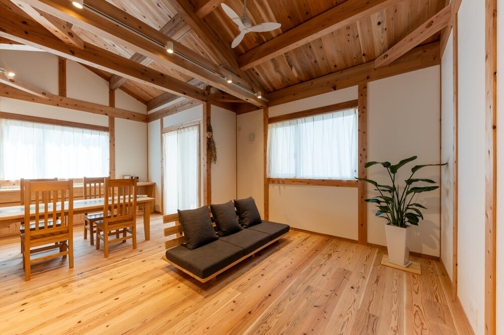 室内には調湿・消臭効果に優れた幻の漆喰と、無垢の杉材(音響熟成木材)/(エアリード)をふんだんに採用。