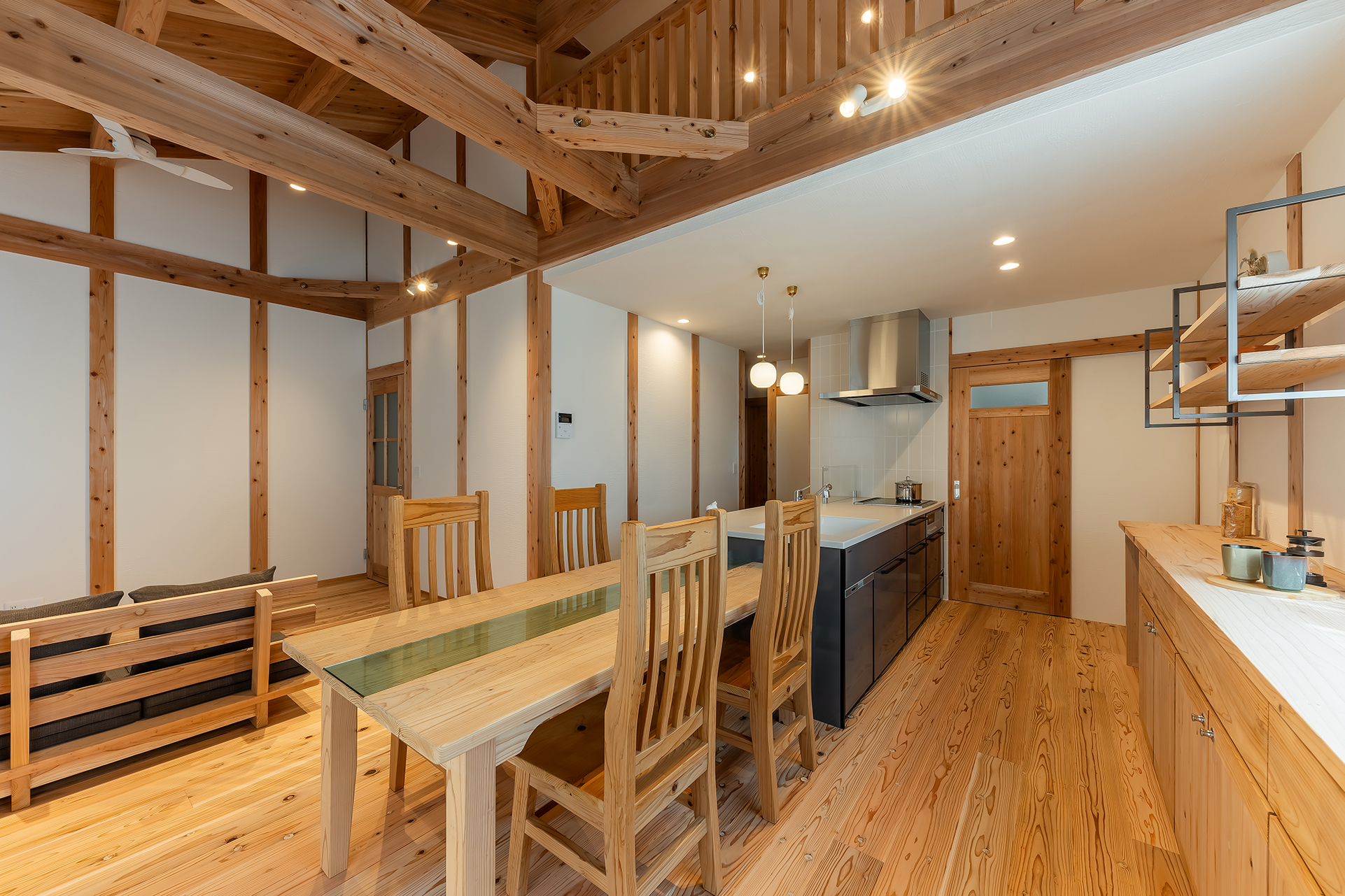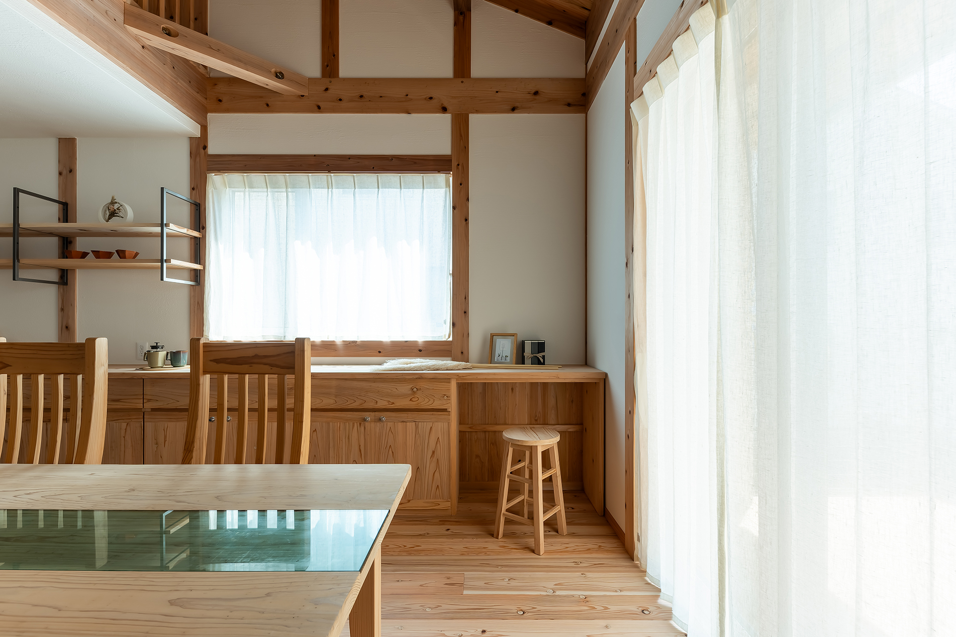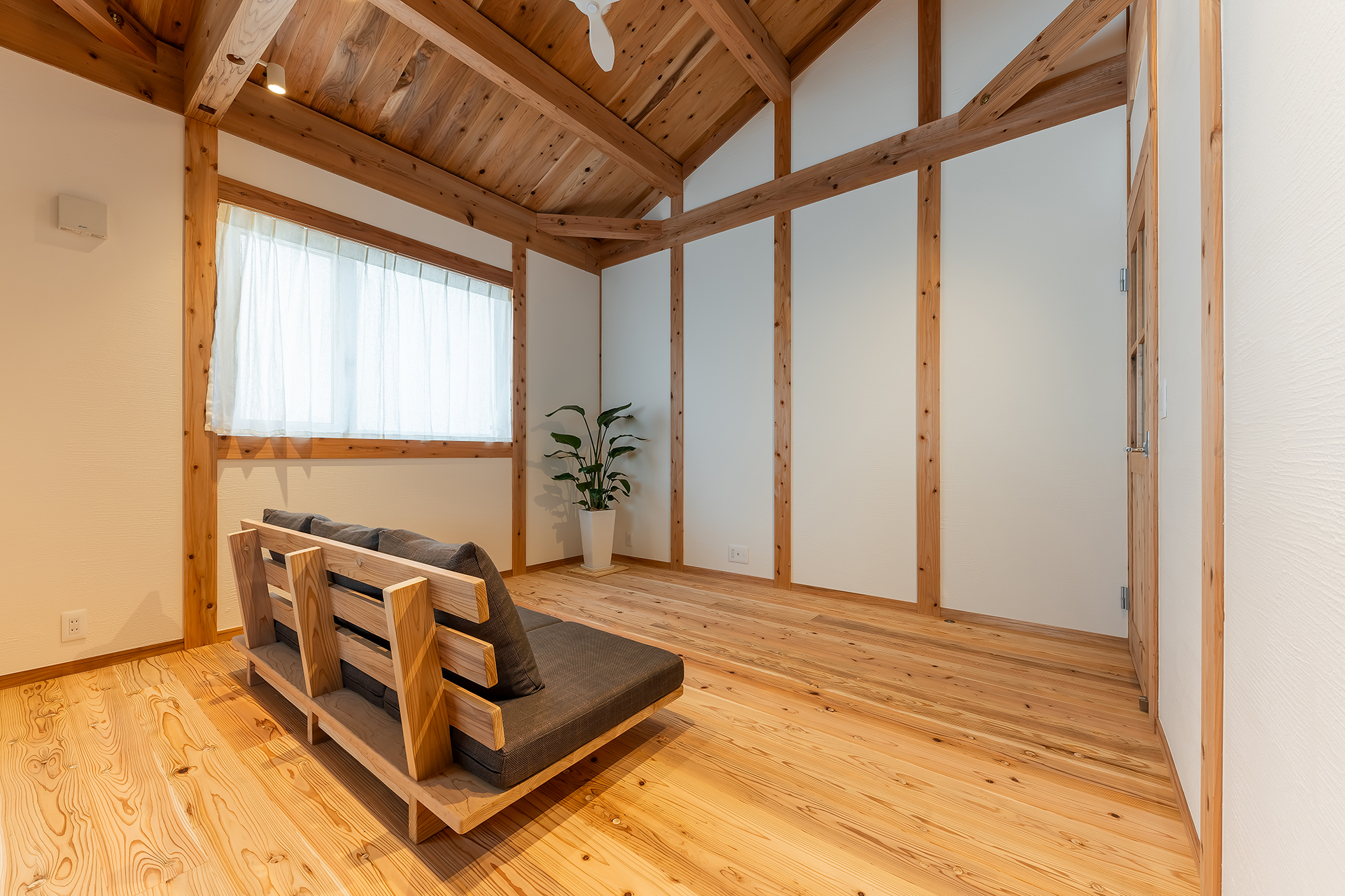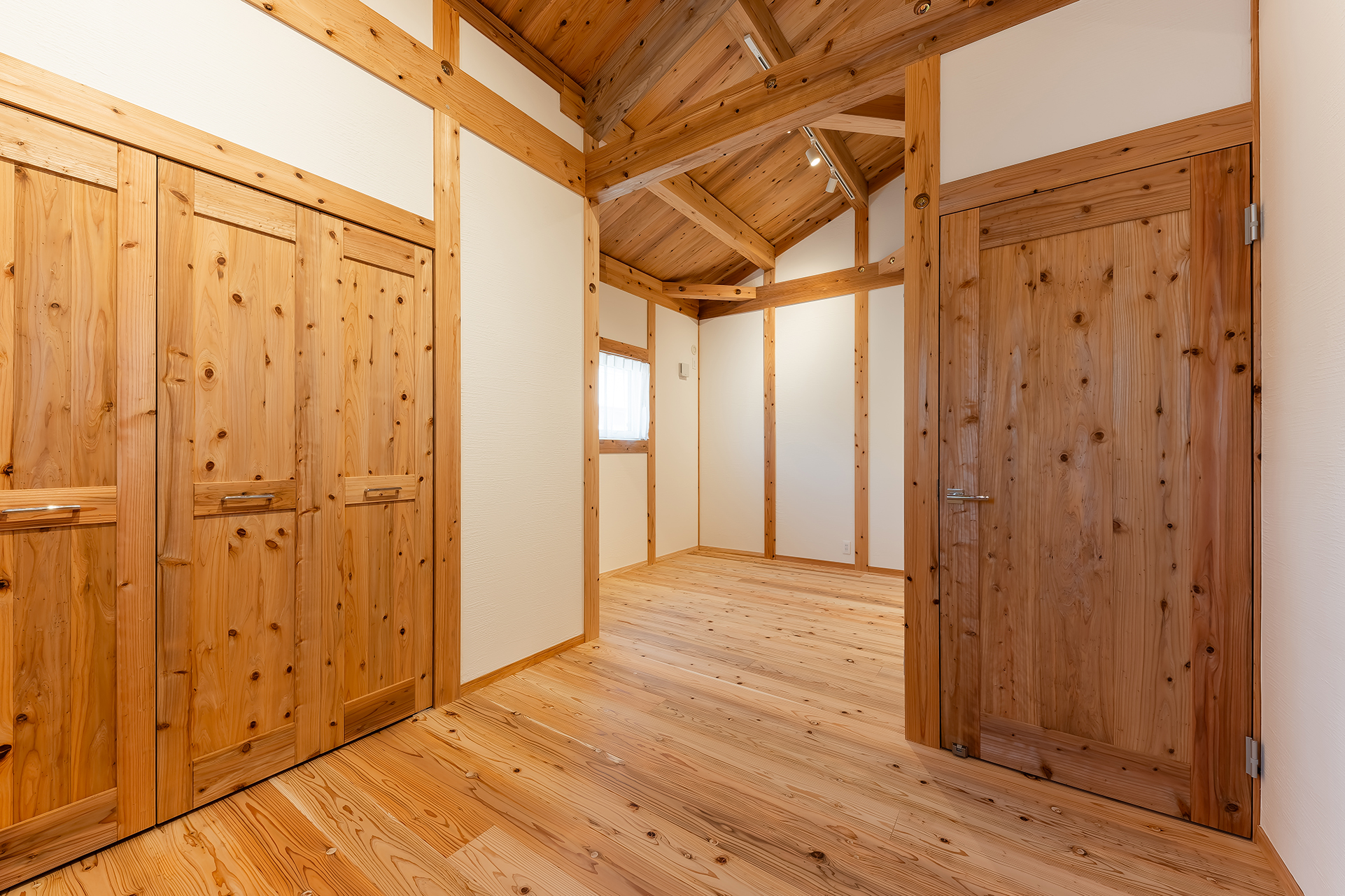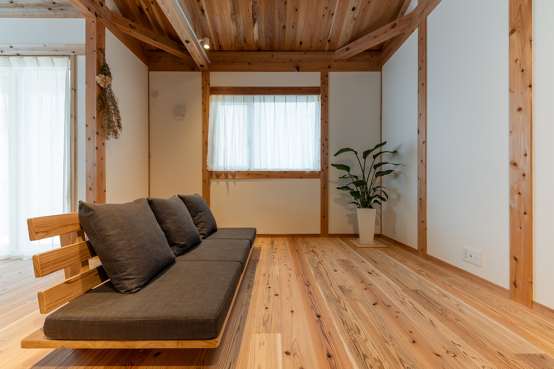 床だけでなく、建具や家具、構造材まで無垢杉(音響熟成木材)を使用した身体に優しい住まいです。