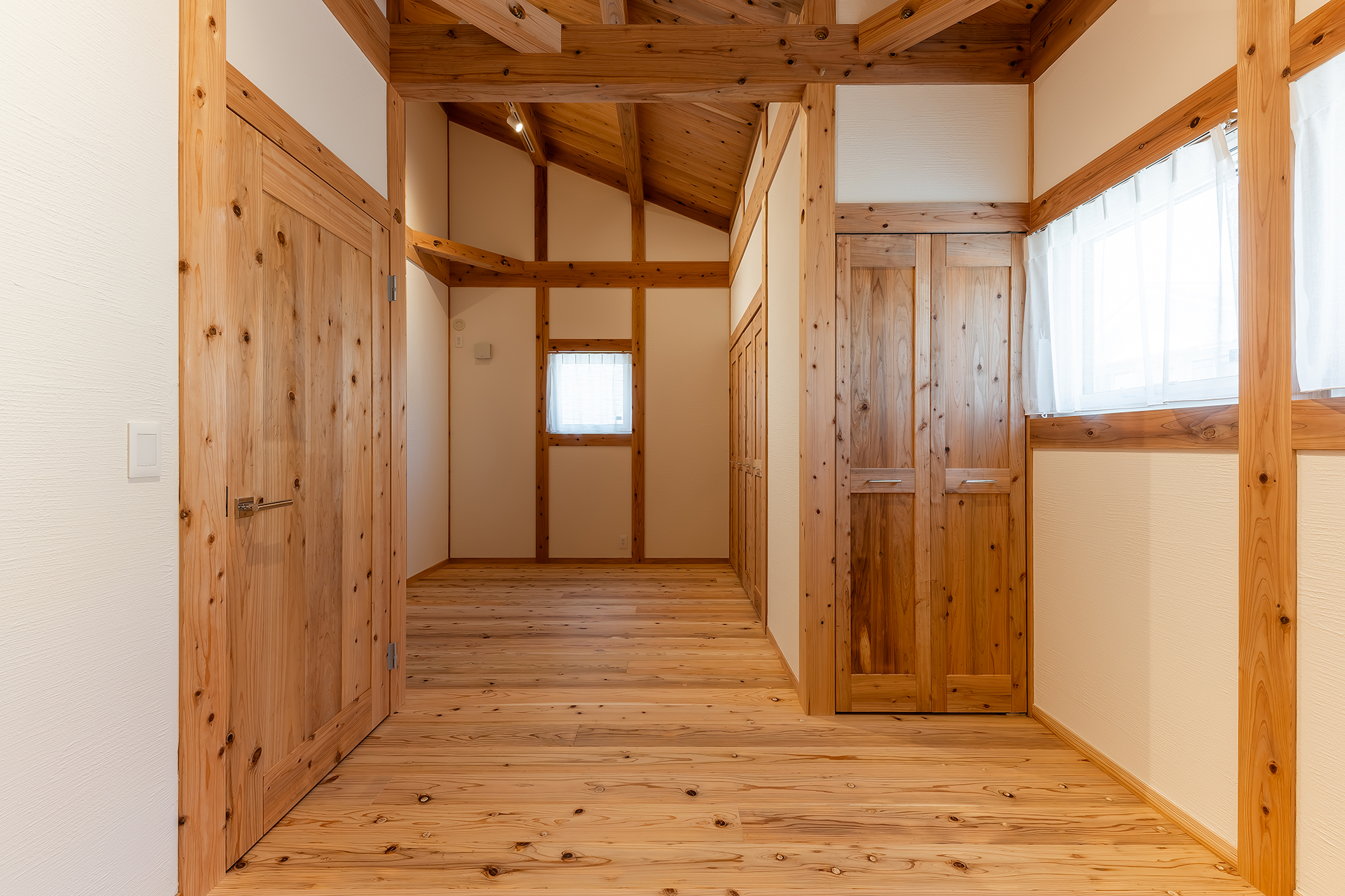 建具も全て無垢杉で統一することで、木の香りが清々しく深呼吸したくなる、まさに「空気がうまい家」です。