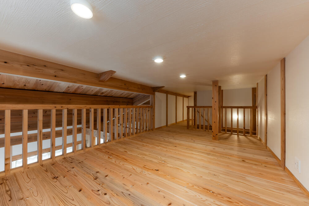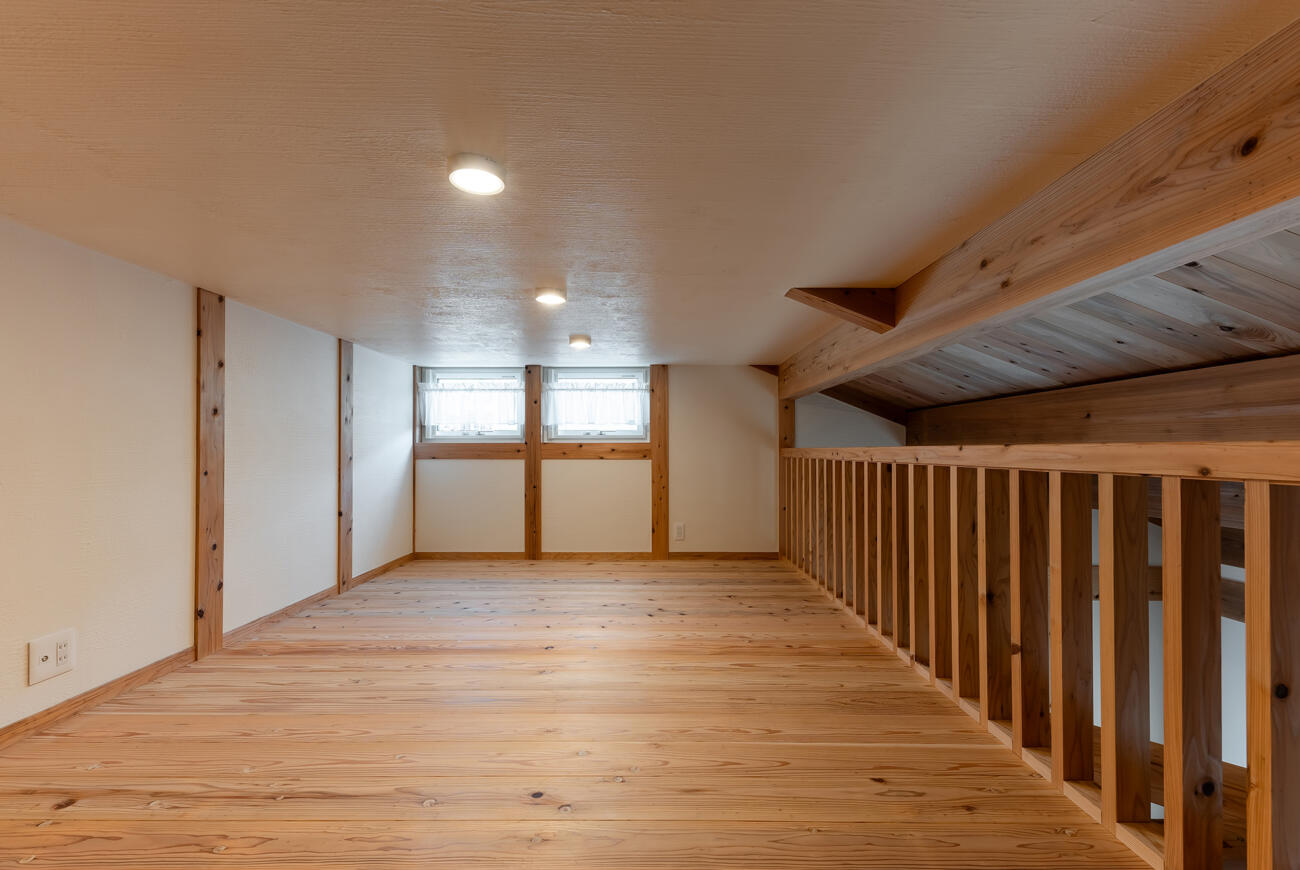 階段を上がると広がるロフト空間。お子様の遊び場として、収納として、マルチに使えます。