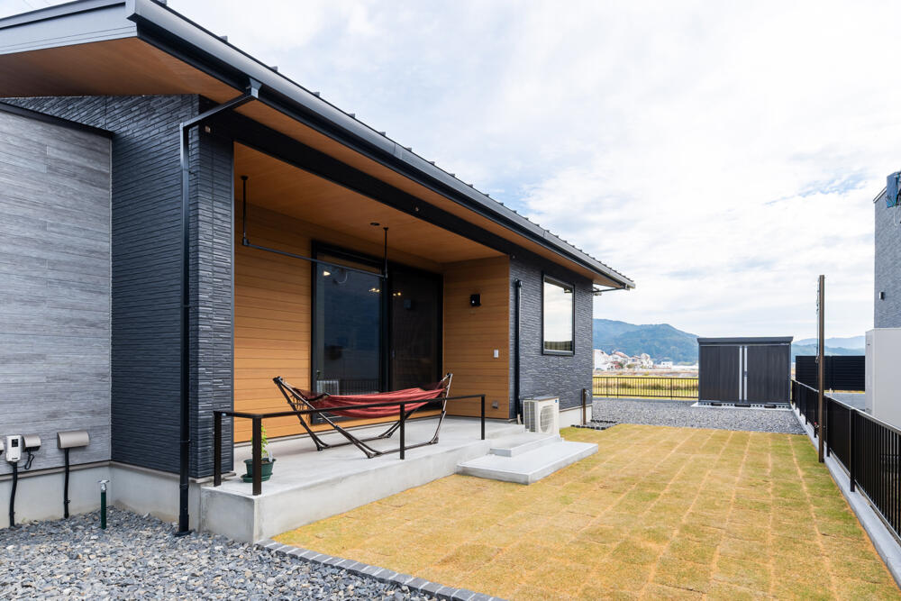 自然に囲まれた環境と溶け込む、アウトドアを楽しめる広々とした庭