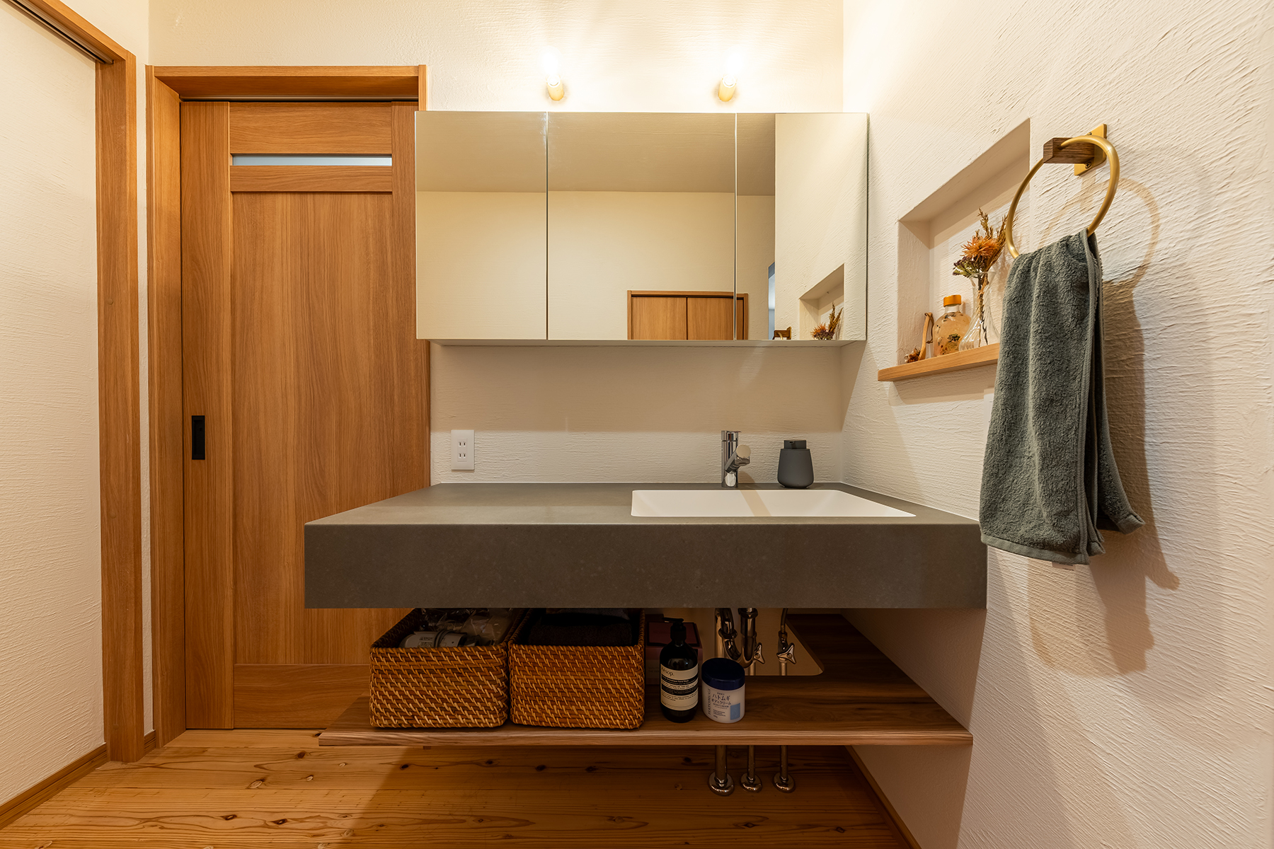 毎日のルーティンが楽しくなるスタイリッシュな見た目だけでなく、収納力もしっかり確保し、使い勝手の良いこだわりの場所です。