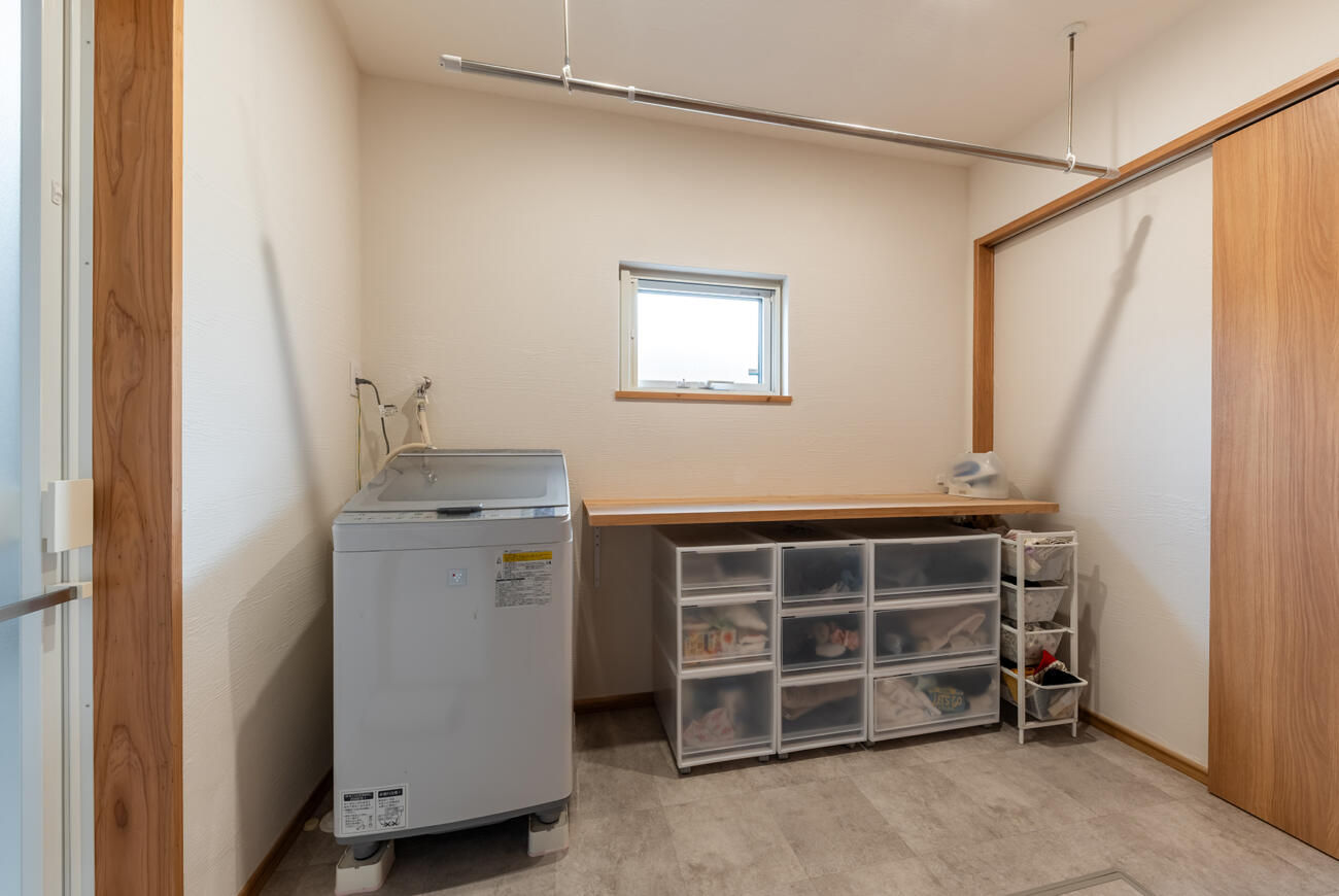 洗面台横の扉を進むと、広々3帖のランドリールームが続きます。