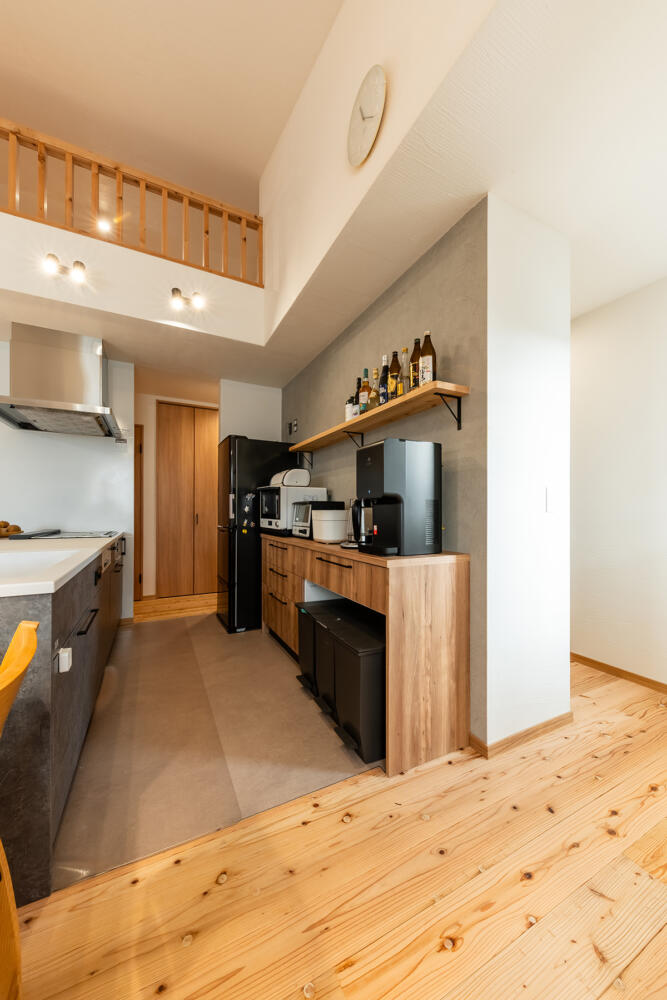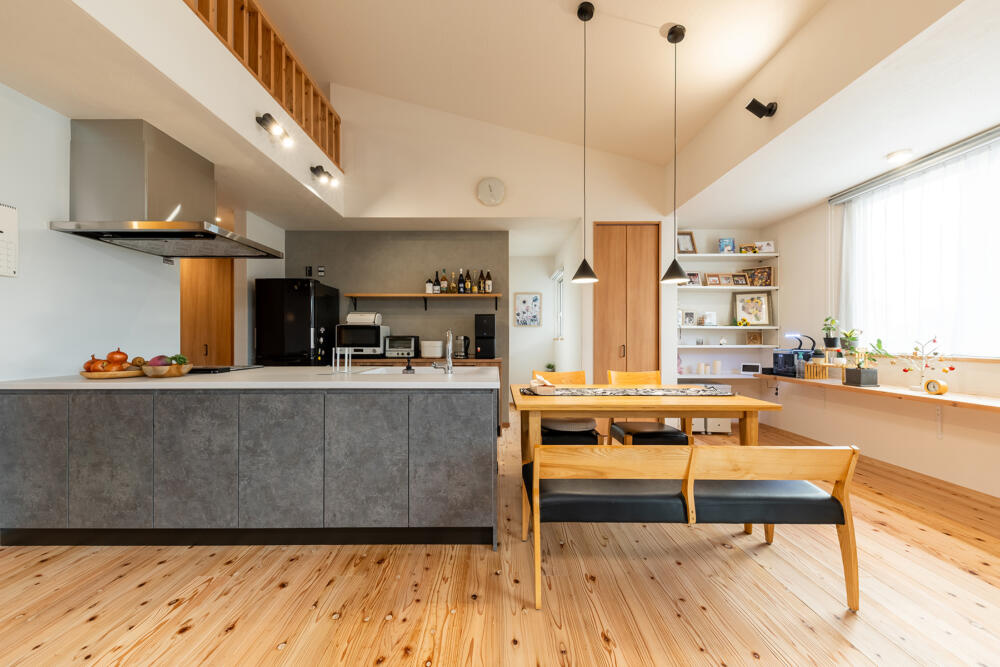 キッチンとダイニングを横並びに配置することで、配膳や片付けがスムーズに。