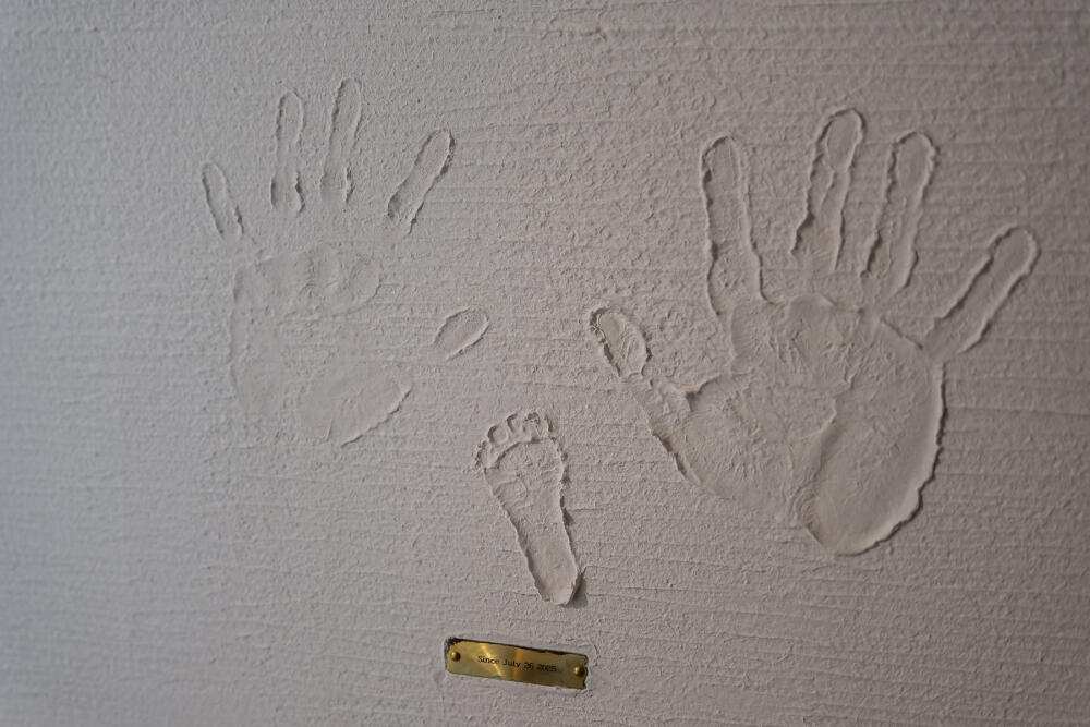 シューズクロークの壁には、家族みんなの手形とお子様の足形を残しています。