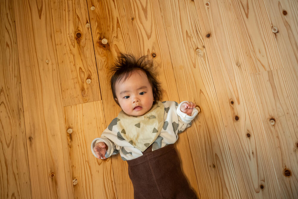 柔らかな無垢材の床は、子供の足腰にも優しく、健やかな成長を温かく支えてくれます😊