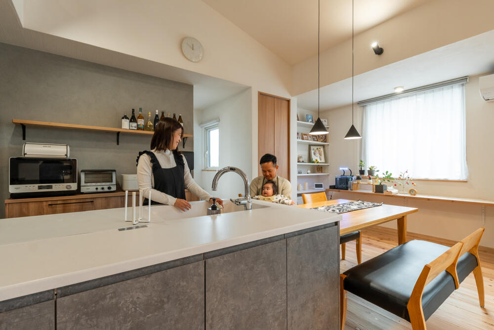 家族との何気ない日常を育む、横並びのキッチンダイニング