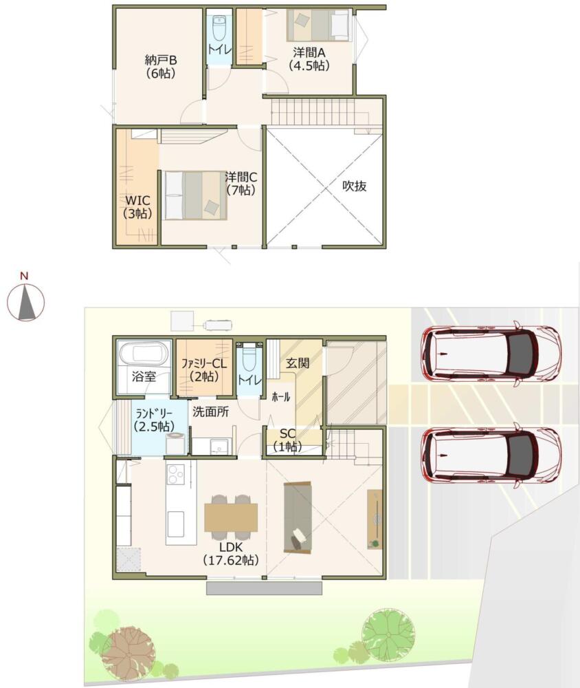 ▶2LDK+ファミリークローク+ランドリールーム+納戸