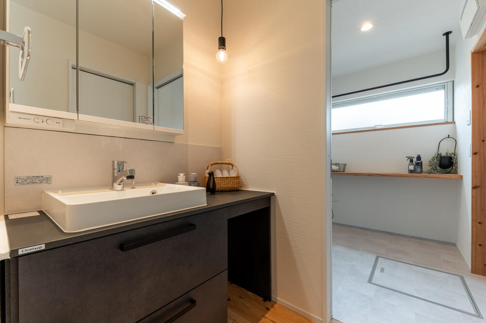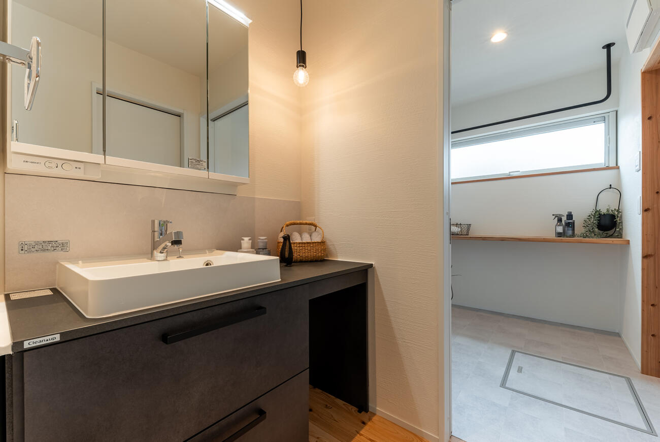 玄関から真っすぐ進むと独立洗面所が繋がります。