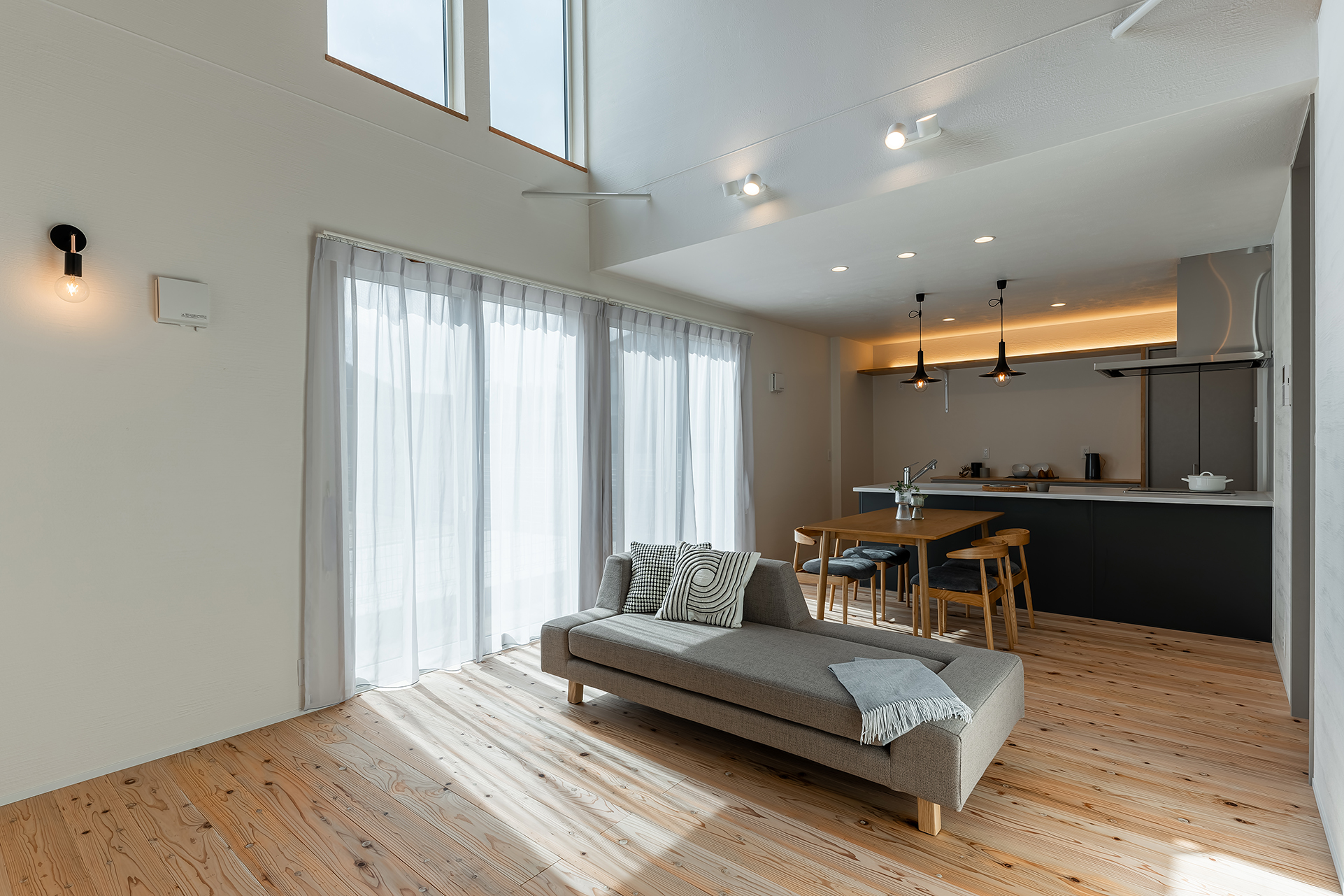 南面の大きな窓からたっぷりと自然光を採り入れることで、日中は照明に頼らずとも明るく開放的なLDKが叶います。