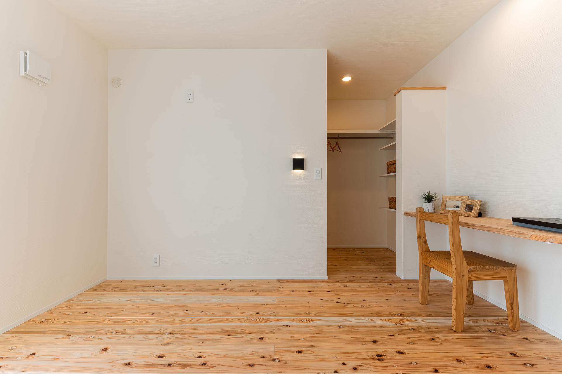 ワークスペースの奥には、仕切り壁で仕切った3帖のWICを配置。