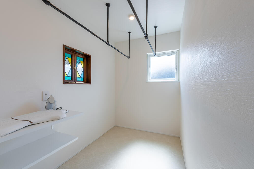 主寝室にある3帖のランドリールーム。壁には調湿・消臭作用のある幻の漆喰を施工。
