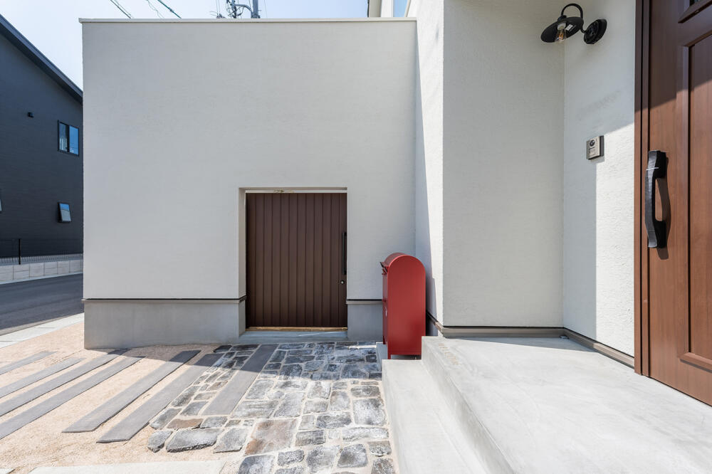 外壁には塗り壁を採用し、部分によって塗り方を変えています。塗り壁だからこそできるひと工夫です😊